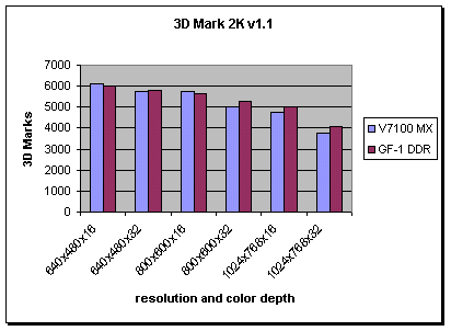 and 333 MHz on the DDR memory. The GeForce MX card was overclocked to